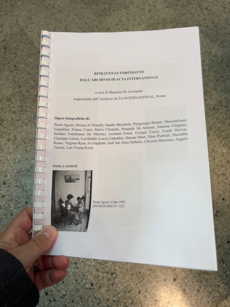 Ritratto/Autoritratto dall’archivio di Acta International offre uno sguardo trasversale sul genere della ritrattistica attraverso una selezione di 40 opere fotografiche provenienti dall’archivio della storica galleria romana realizzate tra gli anni ’40 e il 2021 da autori e autrici internazionali di diverse generazioni: Paola Agosti, Muzna Al Musafir, Sandro Becchetti, Piergiorgio Branzi, Massimiliano Camellini, Franco Cenci, Mario Clementi, Pasquale De Antonis, Simona Filippini, Stefano Fontebasso De Martino, Leonard Freed, Giorgia Fiorio, Frank Horvat, Giuseppe Leone, Lucideddu (Lucia Cadeddu), Hassan Meer, Dino Pedriali, Marialba Russo, Virginia Ryan, Ivo Saglietti, Jack Sal, Enzo Sellerio, Chrystie Sherman, Angelo Turetta e Lim Young-Kyun.